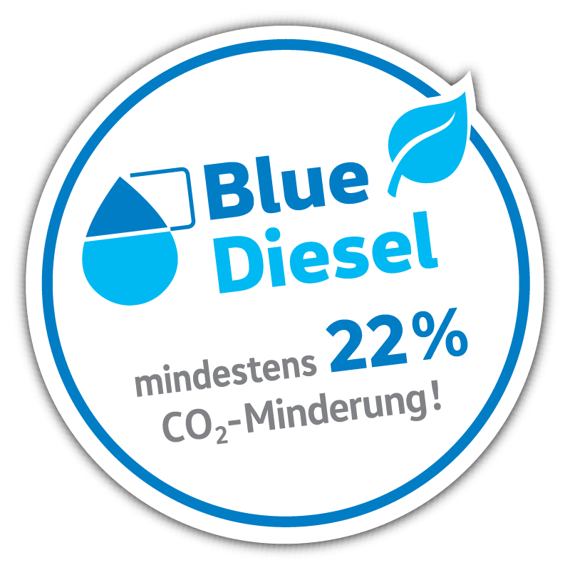 Sparen Sie mindestens 22% Emissionen mit BlueDiesel. Dieser besteht zu einem Drittel aus regenerativen Anteilen. Zusätzlich zum vorgeschriebenen  7% Bioanteil enthält der Blue Diesel weitere 26% HVO.